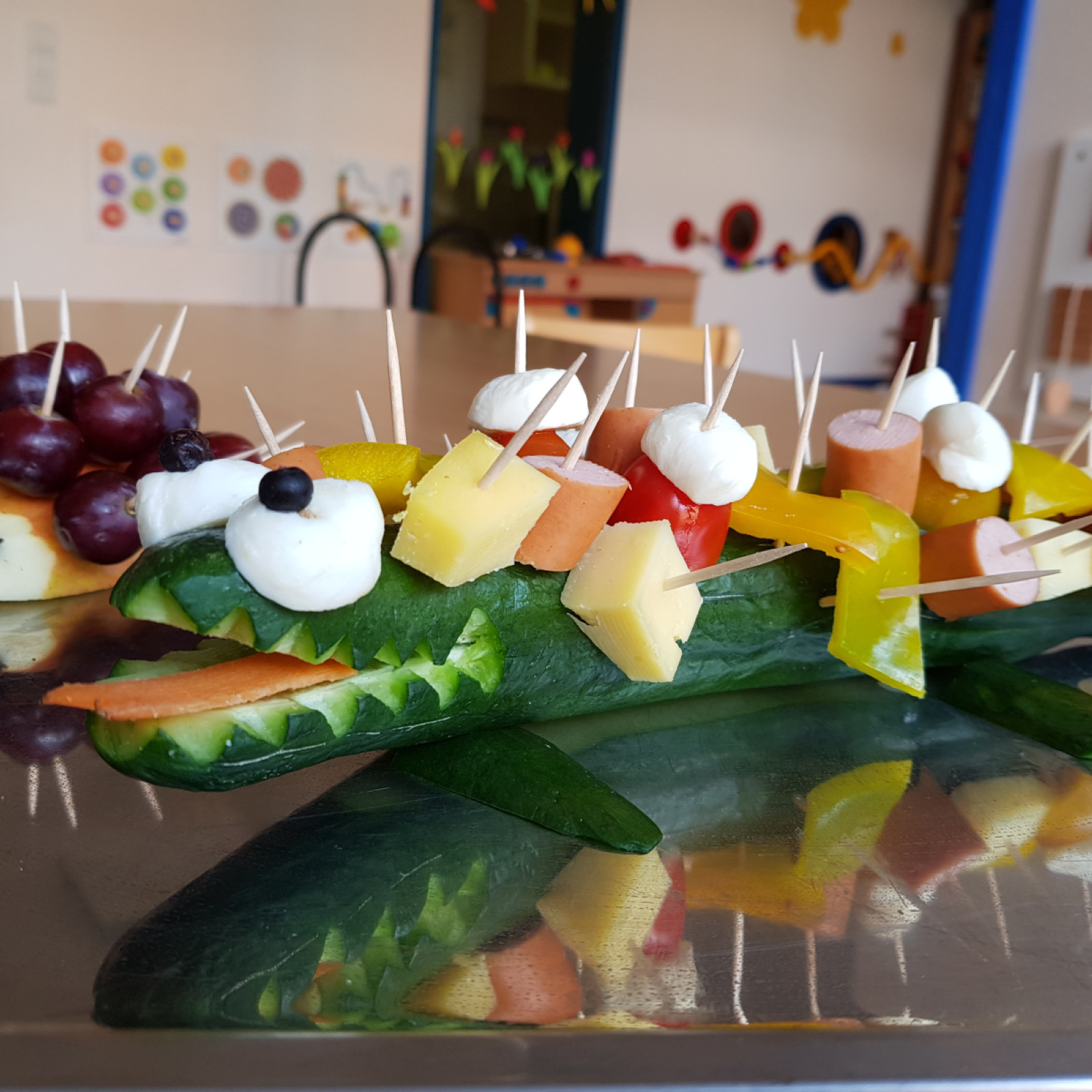 Essen und Trinken nimmt in der Kindertagespflege einen großen zeitlichen Anteil ein – über den Tag verteilt sind es mehrere Mahlzeiten, die wir zusammen einnehmen. Eine kindgerechte Ernährung ist für die gesunde Entwicklung wichtig – das bedeutet bei uns, es gibt eine Vielzahl an frischer und abwechslungsreicher Kost. Die täglichen Mahlzeiten werden frisch zubereitet. Beim Essen lernt das Kind verschiedene Obst- und Gemüsesorten kennen, lernt wie sich Brot und Brötchen schmecken und anfühlen sowie welche verschiedenen Geschmacksrichtungen es gibt. Die Kinder können sich dazu die Zeit nehmen, die sie brauchen und auch selbst entscheiden was und wieviel sie von den angebotenen Speisen essen.